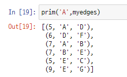 (7, 'D', 'E'), (6, 'D', 'F'),