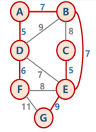 - a) '간선' 리스트에서 추출된 노드의 인접노드가 '연결된 노드 집합' 리스트에 이미 존재한다면 스킵한다.(사이클 방지)