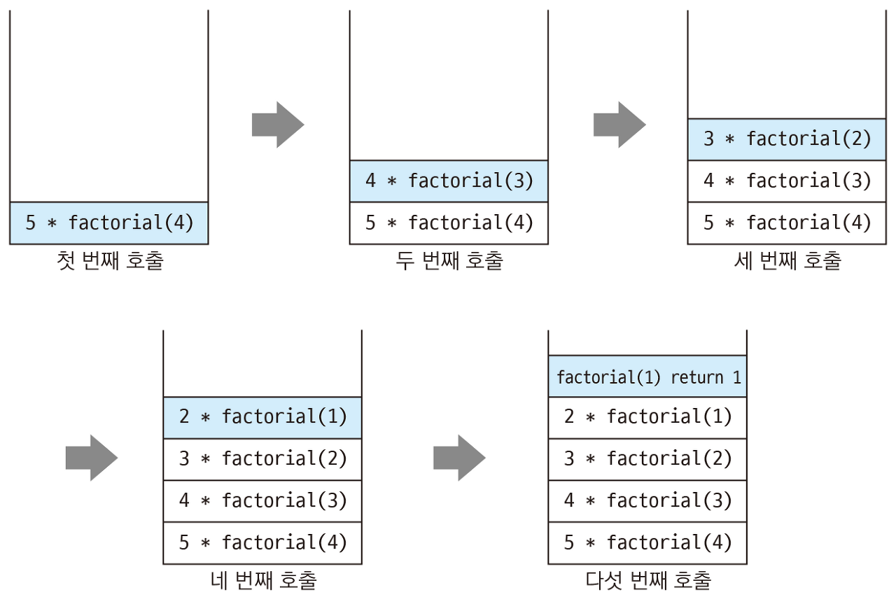- 재귀함수는 마치 Stack처럼 동작한다고 생각하면 이해하기가 편하다.