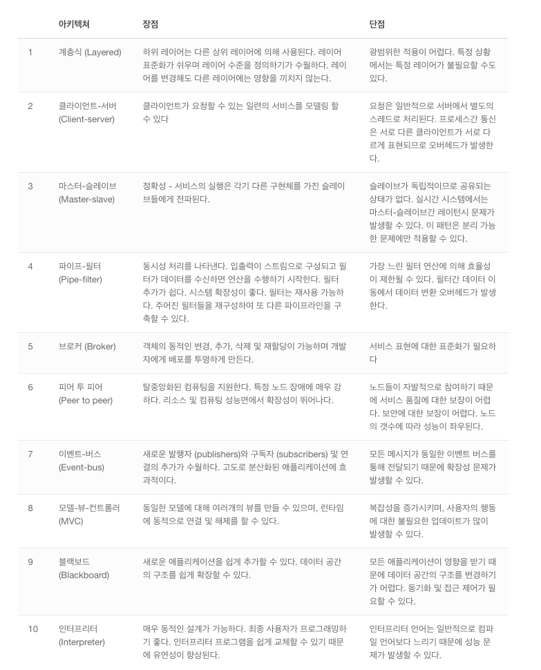 - 대표적인 10가지 SW 아키텍처 패턴에 대해서 알아보자.