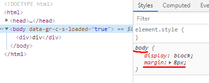 - 위의 사진을 보면 div를 감싸고 있는 body태그에 margin속성의 값이 8px로 설정되어 있는 것을 볼 수 있다. 그렇다면 이 margin이란 무엇인가?