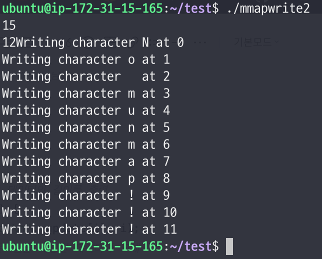 - 위의 코드는 munmap()과 msync()없이 파일에 쓰기 작업을 실행한다.