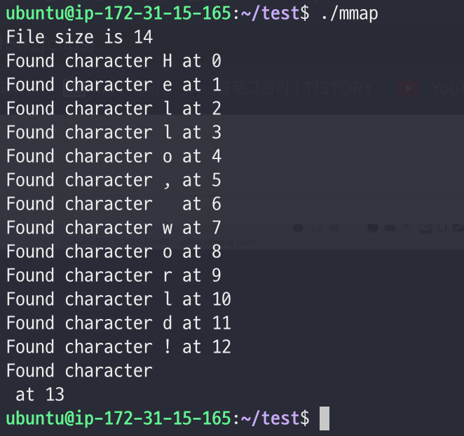 - 만약 mmap()을 실행하여 성공적으로 파일을 메모리에 매핑한다면, 해당 메모리의 주소값이 반환된다.