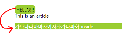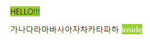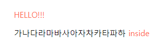 예제2) 다음과 같은 기본 코드에서 HELLO!!!라는 문자열을 갖고있는 첫번째 span에만 속성을 적용해보자. (첫번째 span에만 padding: 5px; border-radius: 10px; 을 적용한다.)