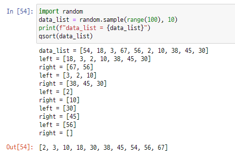 return qsort(left) + [pivot] + qsort(right) # 리스트 간의 연산으로 하나의 리스트를 생성